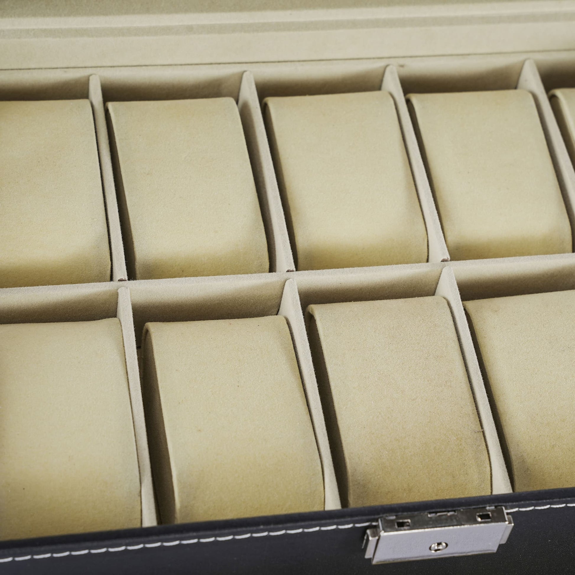 20 Slots Black Faux Pinstripe PU Leather Watch Organizer Double Layer Box